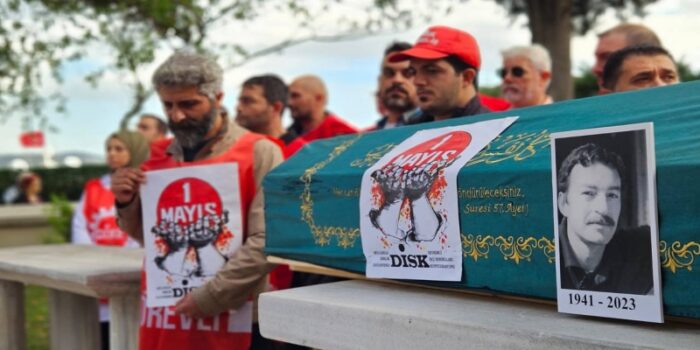 1 Mayıs kutlamalarının simge afişleri, dünyayı avucuna sığdırmış havaya kaldıran nasırlı eller ve zincire vurulmuş işçi afişlerinin çizeri ressam heykeltıraş Orhan Taylan son yolculuğuna uğurlandı.