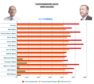 Anket firmaları 14 Mayıs’ta yapılacak cumhurbaşkanlığı seçimlerine ilişkin son kamuoyu araştırmalarını yayınlamaya devam ediyor.