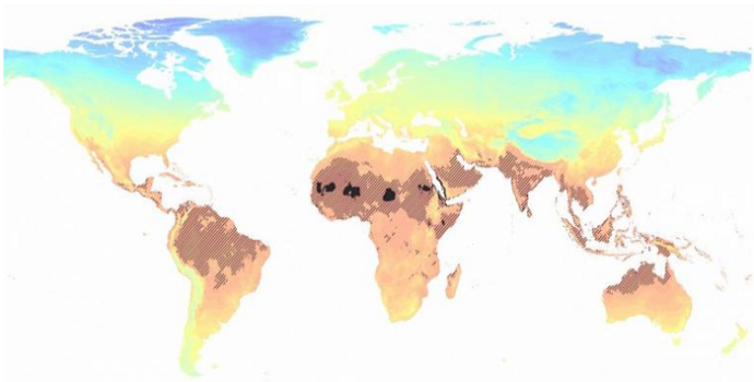 Bu iklim koşullarına sahip günümüzdeki tek yer, küresel kara yüzeyinin yalnızca %0,8’ini oluşturan Sahra Çölü’nün en sıcak bölgeleri. Ancak 2070 yılına gelindiğinde, gezegenin kara yüzeyinin %19’u, bu iklim koşullarında yaşıyor olabilir.