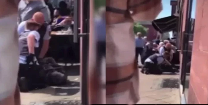 Çevredekiler tarafından kayıt altına alınan görüntülerde, iki polisin 47 yaşındaki adamı zapt etmeye çalıştığı sırada polislerden birinin adamın yüzünü yumrukladığı daha sonra ise elleri arkadan kelepçeli ve yüzü kanlar içerisinde yerde hareketsiz yatan adama bir kişinin kalp masajı yaptığı görüldü.