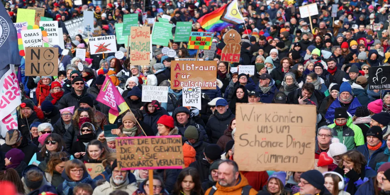 Almanya’nın birçok şehrinde, sağ politikaları protesto etmek ve demokrasiyi savunmak amacıyla on binlerce kişi sokaklara çıktı. Berlin’de yaklaşık 30.000 kişi, sağa karşı düzenlenen bir mitinge katıldı. Benzer protestolar, Mainz ve Düsseldorf gibi şehirlerde de gerçekleşti.