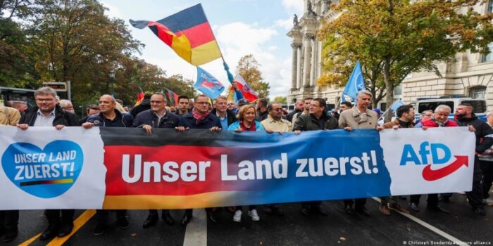 Muhalefetteki aşırı sağcı Almanya için Alternatif (AfD) partisinin çoğunlukla krizlerden beslendiğini vurgulayan araştırma ekibi, bunun bir ilk olmadığını, AfD’nin 2015 yılında göçü reddederek milliyetçi-ırkçı bir partiye dönüştüğünü ve buna göçmenlere yöneltilen öfke ve şiddet retoriğinin olanak sağladığını aktarıyor.