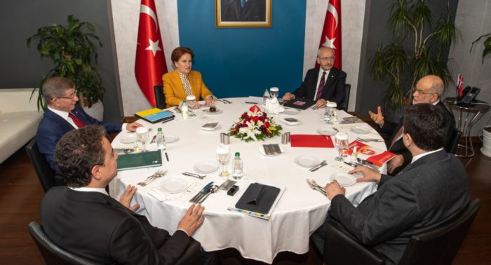 CHP Genel Başkanı Kemal Kılıçdaroğlu, DEVA Partisi Genel Başkanı Ali Babacan, Demokrat Parti Genel Başkanı Gültekin Uysal, Gelecek Partisi Genel Başkanı Ahmet Davutoğlu, İYİ Parti Genel Başkanı Meral Akşener ve Saadet Partisi Genel Başkanı Temel Karamollaoğlu’nun DEVA Partisi Genel Merkezi’nde bir araya geldiği, saat 19.35’te başlayan çalışma yemeği saat 00.30’da sona erdi.