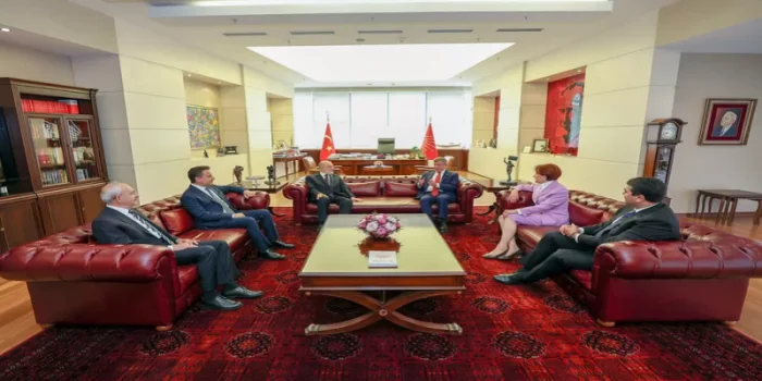 İYİ Parti Genel Başkanı Meral Akşener, Saadet Partisi Genel Başkanı Temel Karamollaoğlu, DEVA Partisi Genel Başkanı Ali Babacan, Gelecek Partisi Genel Başkanı Ahmet Davutoğlu ve Demokrat Parti Genel Başkanı Gültekin Uysal, CHP Lideri Kemal Kılıçdaroğlu’nun evsahipliğinde CHP Genel Merkezi’nde saat 14.00’ten itibaren gelmeye başladı.