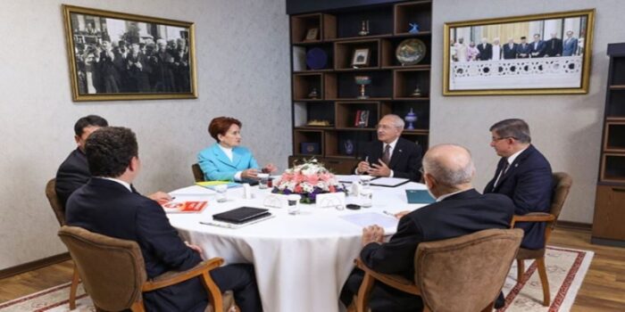 CHP, İYİ Parti, Saadet Partisi, DEVA Partisi, Gelecek Partisi ve Demokrat Parti genel başkanlarınca oluşturulan altılı masa, DEVA Partisi Genel Başkanı Ali Babacan’ın ev sahipliğinde Ankara’da 8’inci kez toplandı.