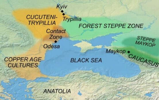 Ancak, daha kuzeyde, günümüz Moldova ve Ukrayna bölgelerindeki mega yerleşimler olan Cucuteni-Tripoli kültürüyle ilişkilendirilen yerleşimler ortaya çıktı. Bu dönemde, günümüzden 5.200 ile 6.500 yıl öncesine denk gelen Eneolitik dönemde, bugünkü Odessa çevresindeki bölge insan etkileşiminin bir “erime potası” haline geldi. Mega yerleşimlerde, çanak çömlek tarzı ve diğer eserlerde, yakın bölgelerden ve Kuzey Kafkasya’dan gelen etkiler görüldü.