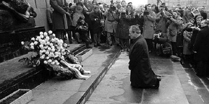 Bu durumlar ulusların tarihi için de geçerlidir. Onlar da kendi tarihlerini kabullenip sahip çıkmadıkları zaman aynı kaderi paylaşırlar, kendi yarattıkları kuşak lanetleri içinde debelenip dururlar. Oysa ulusların kendi tarihlerini kabullenmeleri çok önemlidir. Uluslar böyle yaparak kendi tarihlerini temizlemek için yola koyulur. Gördüğüm fotoğraf; 1970 yılında o zamanın başbakanı olan Willy Brandt tam da böyle yapmıştır. Brandt Alman bayrağının renkleri ile döşeli bir çelenkle Varşova’daki Getto Anıtı’nı ziyaret eder, çelengi anıta yerleştirdikten sonra anıtın ıslak taşları üzerinde dizlerinin üstüne çökerek ellerini saygıyla önüne kavuşturur. Varşova direnişine katılan biri bu durum karşısında şöyle hissettiğini söyler; “Willy Brandt’ın Varşova Gettosu anıtındaki diz çöküşünü gördüm. O anda şunu hissettim: Artık içimde nefret yok! O diz çöktü ve halkını yükseltti.” Kendi adıma,Brant’ın bu erdemli davranışını ve Alman ulusunun kendi tarihini temizleme gayretini, kendi tarihlerinde lanet ve soykırım olan diğer uluslar de için çok önemli olduğunu düşünüyorum.
