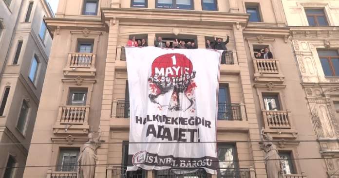 İstanbul Barosu, 1 Mayıs İşçi Bayramı öncesinde Beyoğlu’ndaki merkez binasına üzerinde “Halkın ekmeğidir adalet” yazılı dev pankart asarak dikkat çeken bir kamusal müdahalede bulundu. Baro Başkanı İbrahim Kaboğlu, yönetim kurulu üyeleri ve baro çalışanlarının katılımıyla gerçekleştirilen etkinlikte pankart sloganlar eşliğinde bina cephesine yerleştirildi.
