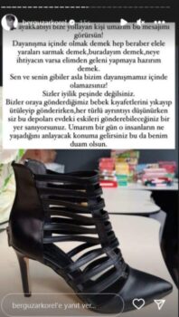 “Ayakkabıyı bize yollayan kişi umarım bu mesajımı görürsün” diyen Bergüzar Korel paylaşımında şunları yazdı:
