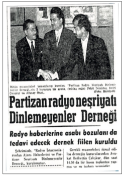 Vatan Cephesi’ne katılan kişilerin isimlerinin her haber saati öncesi okunması, DP’nin radyoyu kendi propagandasının aracı hâline getirdiği eleştirilerini iyice su yüzüne çıkaracak; iktidar ve muhalefet partileri arasındaki tartışmalar, aynı yılın Aralık ayı başında Radyo İstasyonlarından Ajans Haberlerini ve Partizanca Neşriyatı Dinlemeyenler Derneği’nin kurulmasına vesile olacaktır. Milliyet gazetesinin 2 Aralık 1958 tarihli nüshasında çıkan habere göre, avukat Bedri Çalışkur başkanlığında kurulan bu derneğin amaçları arasında, radyoların partizanca neşriyatından asabı bozulan vatandaşları tedavi ettirmek de vardır. Ancak derneğin ömrü uzun olmaz. Saat on sularında derneğin Galata, Necatibey Caddesi Mimar Han’ındaki merkezine gelen polis, Valiliğin emriyle dernek merkezini mühürler ve yöneticileri hakkında takibat başlatır. Dernek Başkanı Bedri Çalışkur, mahkeme kararı olmaksızın derneğin mühürlenmesi emrini veren Vali Ethem Yetkiner hakkında, 1.001 Türk Lirası manevî tazminat talebiyle dava açar. Radyo İstasyonlarından Ajans Haberlerini ve Partizanca Neşriyatı Dinlemeyenler Cemiyeti’ni kurma çabasındaki Çalışkur’un, davanın görüldüğü İstanbul İkinci Asliye Hukuk Mahkemesi’nden mahkeme kararının radyodan okunmasını talep etmesi ise oldukça ilginç bir ayrıntı olarak vurgulanmalıdır.