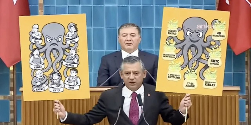 CHP Genel Başkanı Özgür Özel, partisinin grup toplantısında yaptığı konuşmayla hem Cumhurbaşkanı Erdoğan’ın “ahtapot” benzetmesine cevap verdi hem de AKP’li belediyelerdeki yolsuzluk iddialarını gündeme taşıyarak siyasi iktidarın yönünü doğrudan hedef aldı. Bu çıkış, hem içerdiği sembolik dil hem de Sayıştay raporlarına dayanan somut iddialar açısından kayda değerdi.