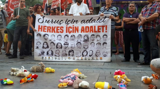IŞİD’in Suruç saldırısında hayatını kaybeden 33 kişi için, İzmir’de anma etkiliği düzenlendi. Saldırıdan yaralı olarak kurtulan Şahin Tülüklü, “Bize soruyorlar siz neden oradaydınız? Çünkü orada yıkılmış bir kentin sokaklarında taşlardan, bombalardan oyuncak yapmaya çalışan çocuklara, düşleri, umutları, oyuncakları götürmek için oradaydık” dedi.