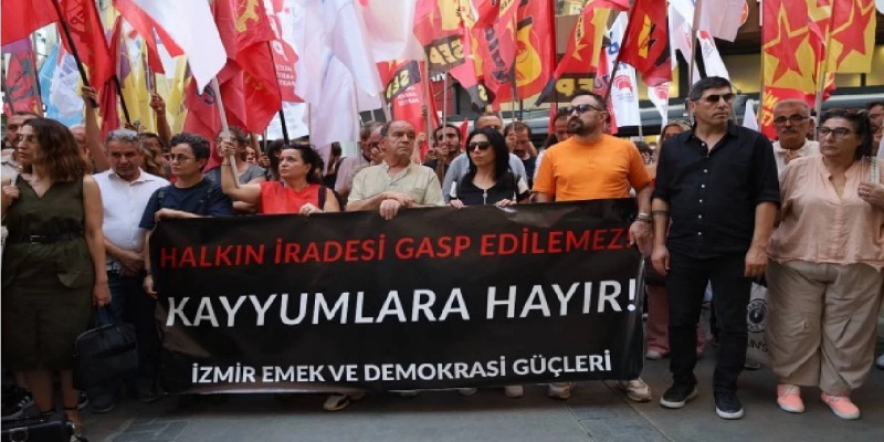 CHP İstanbul İl Yönetimi’ne mahkeme kararıyla atanan kayyım, İzmir’de Emek ve Demokrasi Güçleri’nin çağrısıyla protesto edildi. İzmir Tabip Odası Başkanı Nuri Seha Yüksel, yapılan basın açıklamasında “halkın iradesinin gasp edildiğini” vurguladı.