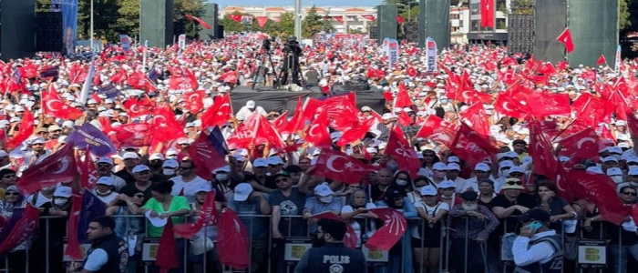 Şu anda insanlar bu sıcağa rağmen geliyor. Dışarıda on binler var. İnanılmaz derecede bir katılım var. İnşallah vatandaşımızın bu destekleri ve bu ilgisi iktidarda yerini bulacak ve rahat bir nefes alacak milletimiz.”