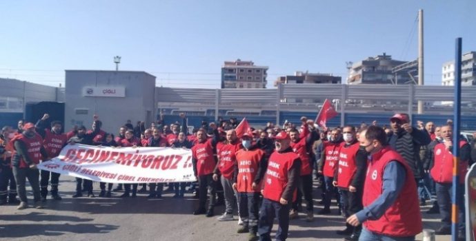 TİS görüşmeleri devam ederken talep ettikleri ücret artışının enflasyonun altında kaldığını, istenilen zam oranının da bir kıymeti kalmadığını aktaran Gümüştekin, “Toplu İş Sözleşmemizin bitmediği her gün, bizi ücretlerimizin eridiği ekonomik kriz ile daha fazla karşı karşıya bırakmaktadır. Bu açıdan bizim için durum açık ve nettir; insanca bir yaşam için enflasyon karşısında ezilmediğimiz bir ücret talep ediyoruz. Bu bağlamda yüzde 20’lerde olan işverenin son teklifini, üyelerimizle değerlendirerek mücadeleye devam kararı almış bulunmaktayız. Sendika olarak yüzde 40 talep ediyoruz. Eğer Toplu İş Sözleşmesinde masada anlaşma sağlayamazsak 7 Nisan itibari ile Çiğli’de Çibel işçileri greve çıkacaktır. Grev kararı alan işçiler; gücünü, cesaretini örgütünden, birliğinden, hayatı yeniden yaratan ellerinden almaktadır” ifadelerini kullandı.