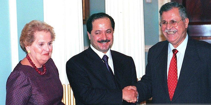 19 Eylül 1998’de, ABD Dışişleri Bakanı Medeiline Allbright’in, parmağıyla işaret ederek Barzani ve Talabani’yi dünyanın gözü önünde tokalaşmaya davet etmesi hatırlardadır.