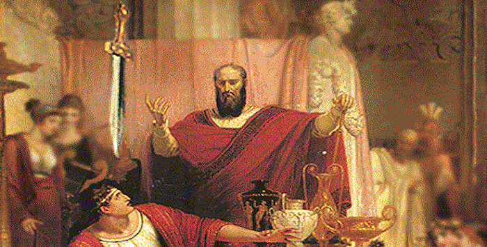 Damokles’in Kılıcı miti aslında hepimizin ruhunu esir alan ve kendimizi sürekli bir tehdit algısı altında hissetmemizi sağlayan ilginç bir metafordur. Çiçero MÖ. 260 yılında yazdığı “Turculum Tartışmaları” adlı kitabında Sirakuza kralı Dionysios ile Danışmanı Damokles arasında yaşanan bu miti şöyle anlatır. Kralın danışmanı Damokles; sürekli olarak ülkenin yönetimi ile ilgili konuşmaktadırlar. Bu konuşmalardan bıkan Kral, danışmanı Damokles’i ihtişamlı bir törenle kendi tahtına oturtur ve tam kafasının üstüne gelecek şekilde bir kılıcı at kuyruğu ile bağlar ve Damokles kendisini sürekli olarak tehdit altında ve güven içinde hissetmediği için krallığın ihtişamından ve gücünden hiç hoşnut ve huzurlu olmaz. Bu gelenek modern ve eski imparatorlukların hepsinin hafızasında var. Sadece kılıç, yerini başka nesnelere ve başka tehditlere bırakmıştır. Mesela dinler için bu gelenek günah ve cezadır. Yine aynı şekilde “modern devletler” için insanın onurunu ve değerini yok sayarak yapılan yasalar ve yasal düzenlemelerdir. Yani yaratılan korku cehennemleridir. Onun için korku cehennemleri bedenimizi, beynimizi ve zihnimizi her zaman çökertmiştir.