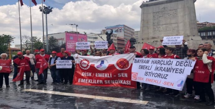 DİSK Emekli-Sen, 13 Haziran 2023 tarihinde Ankara Ulus Meydanı’nda bir basın açıklaması yaparak emeklilerin ikramiyelerinin asgari ücret düzeyinde ve yılda iki kez verilmesini istedi.