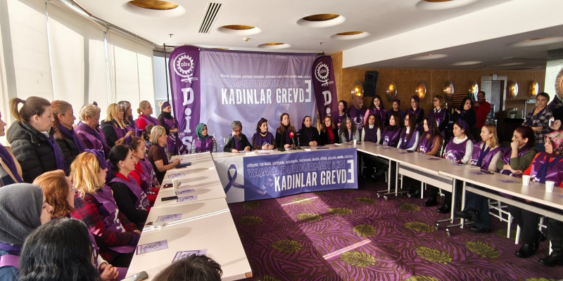 DİSK Kadın Komisyonu, 7 Mart’ta tüm kadınları greve çıkmaya ve alanları doldurmaya çağırarak, “Emeğimiz, haklarımız ve hayatlarımız için dayanışmayı büyütüyoruz. Kazanılmış haklarımıza saldıranlara karşı yaşamı durduruyoruz!” mesajını verdi.