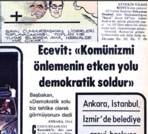 Ecevit’in Demokratik Solu’nun bir Komünizmle Mücadele hareketi olduğu fikrinin benim analizim değil, bizzat Ecevit’in değerlendirmesi olduğunun altını tekrar çizmek isterim. Ecevit’in açıklamalarına dair aşağıda sunulan haber buna ilişkin 1980 öncesinden verilebilecek en nadide örneklerden biridir.