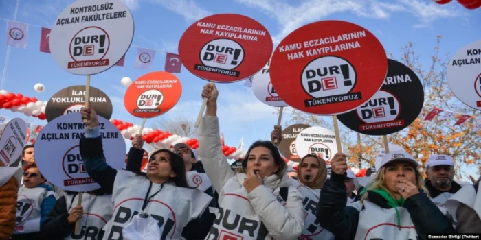 Türkiye’de döviz kuru artışı nedeniyle yaşanan ilaç sıkıntısı başta olmak üzere ekonomik koşulları ve hak kayıplarını gündeme getirmek amacıyla 14 yıl sonra eczacılar meydana çıktı.