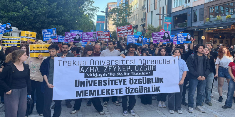 Üniversite öğrencileri Azra, Zeynep ve Özgür’ün tutukluluğu 57. gününü geride bırakırken, gençliğin sesini bastırmaya yönelik baskı politikalarına karşı Türkiye’nin dört bir yanında eylemler düzenlendi. Trakya Üniversitesi öğrencileri olan üç genç, 19 Mart’ta İstanbul’da başlayan protesto sürecinin ardından Edirne’de gözaltına alınmış, 25 Mart’tan bu yana tutuklu bulunuyor.