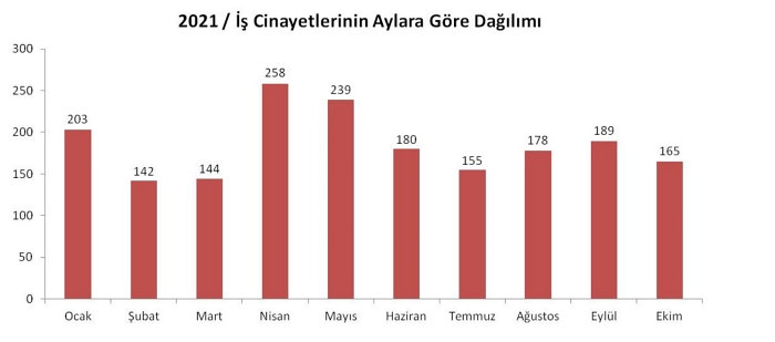 İş cinayetlerinin aylara göre dağılımına baktığımızda: