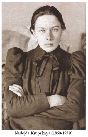 İlk isim, Nadejda Konstantinovna Krupskaya (Надежда Константиновна Крупская) idir. Vladimir İlyiç (Ulyanov) Lenin’in eşi olarak tanınır ise de aynı zamanda Lenin ile ömür boyu bir yoldaşlık içinde devrimci mücadele içinde aktif bir biçimde bulunmuş bir şahsiyettir de. 1869 yılında Petrograd’da doğar. Devrimci fikirlere sahip, aristokrat kökenden gelen ama zaman içinde yoksullaşmış bir ailede doğup, büyür. Bu arada, hem devrimci fikirlere hem de işçi sınıfına aşina bir biçimde geçer ilk gençlik yılları. Eğitimin ve pedagojinin önemli olduğunu düşündüğü için öğretmen olur. Gençlik yıllarında, özellikle Lev Tolstoy ile Karl Marx ve Friedrich Engels’in eserlerinden çok etkilenir. 1895 yılında Lenin’in de içinde bulunduğu “İşçi Sınıfının Kurtuluşu Birliği” örgütüne girer. Bu örgüt içindeki faaliyetleri nedeniyle sürgüne gönderilir. Yine sürgünde olan Lenin’le evlenir ve bir süre Sibirya’da kalırlar. Sürgünden sonra, Lenin’le beraber Avrupa’ya giderek devrimci mücadeleye orada devam ederler. Iskra’da faal olarak çalışmasının yanısıra yapılan toplantılarda, çalışmalarda da aktif olarak rol alır. Fakat esasüzerinde durduğu konu eğitim meselesidir ve dünyadan çeşitli ülkelerin eğitim sistemlerini inceler ve Marksist bir eğitim sisteminin yollarını, yöntemlerini oluşturmaya çalışır. 1917 yılında Şubat Devrimi’nden sonra Rusya’ya dönerler ve Ekim Devrimi’ne giden süreçte Krupskaya aktif olarak çalışmalara katılır. Hatta, Ekim Devrimi’ni örgütleyen Vyborg Komitesi’nin de bir üyesidir. Ekim Devrimi’nin ardından da, Sovyetler Birliği’nin inşa sürecinde hem Sovyetler Birliği’ne özgü bir eğitim sisteminin kurulmasında belirgin bir rol oynar hem de kadınların haklarına dair çalışmalara da aktif olarak katılır. Sovyet hükümetinde Eğitim Bakanı olur. Lenin’in ölümünden sonra üstlendiği bürokratik görevlerin yanısıra yeni eğitim sisteminin geliştirilmesi için çalışır. 1939 yılında da vefat eder. Kaleme aldığı eserleri de 11 cilt altında toplanmış, çok çeşitli dillere çevrilmiştir.