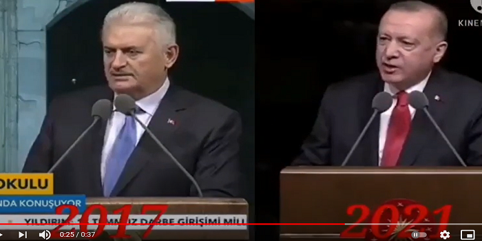 AKP Genel Başkanı ve Cumhurbaşkanı Recep Tayyip Erdoğan’ın Beştepe Millet Kongre ve Kültür Merkezi’nde “Bizim Yunus” Yılı açılış Töreni’nde yaptığı konuşmada yabancı kelime kullanımı ile ilgili söylediği cümleler, AKP İzmir Milletvekili Binali Yıldırım’ın 4 sene önce yaptığı konuşmanın birebir aynısı çıktı.