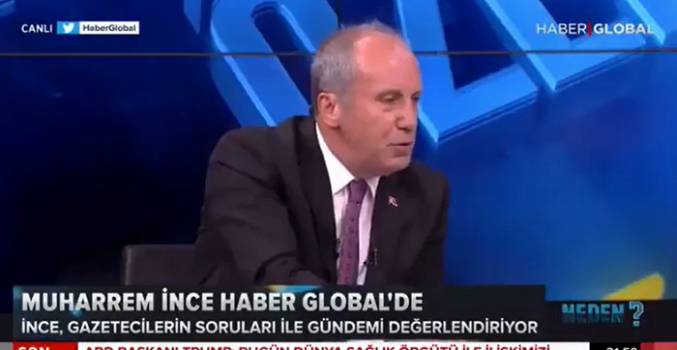 Muharrem İnce, Haber Global’de Senem Toluay Ilgaz’ın sunduğu Neden programının konuğu oldu.Konuşması sırasında AKP Genel Başkanı ve Cumhurbaşkanı Recep Tayyip Erdoğan’ın Ayasofya’daki İstanbul’un fethi konuşmalarına bağlanan Haber Global stüdyosunu terk etti.