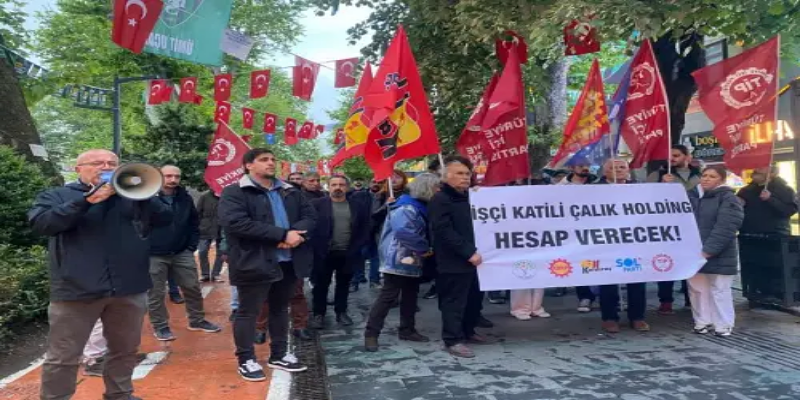 İzmit’te DEM Parti, EMEP, SOL Parti, Kaldıraç ve Türkiye İşçi Partisi’nin çağrısıyla düzenlenen basın açıklamasında konuşan Emek Partisi İl Başkanı İlhami Şahbaz, yaşanan olayın münferit olmadığını vurguladı: “Kapısına gidip hakkını isteyen bir işçiyi öldürecek kadar pervasızlaşan Çalık Holding kim? Gücünü nereden alıyor? Bu holdingin arkasında, damat Berat Albayrak’ın CEO’luk yaptığı dönemden bu yana kurduğu siyasal ağlar var. Bu düzen ekmek isteyenin değil, patronların düzenidir.”