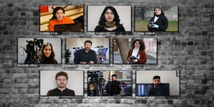 Ankara’da 25 Ekim’de gözaltına alınan Mezopotamya Ajansı (MA) Yazı İşleri Müdürü Diren Yurtsever, muhabirleri Deniz Nazlım, Berivan Altan, Selman Güzelyüz, Emrullah Acar, Ceylan Şahinli ile JINNEWS muhabirleri Habibe Eren ve Öznur Değer, gece yarısı çıkarıldıkları mahkemece “örgüt üyeliği” iddiasıyla tutuklandı.