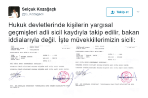 Kozağaçlı Twitter hesabından da Gülen ve Akça’nın 17 Mayıs tarihli adli sicil kayıtlarını paylaştı. Belgelere göre iki eğitimcinin de adli sicili temiz.