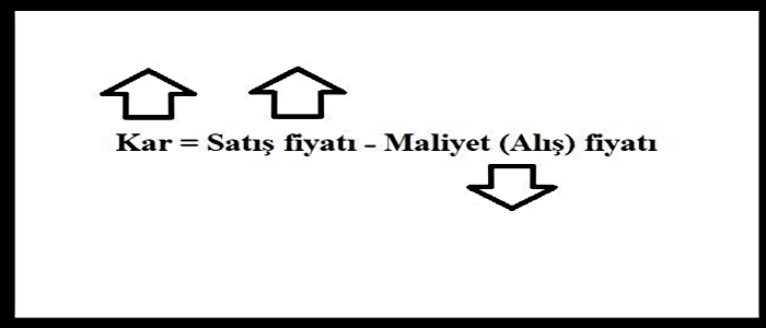 Okları dikkatle takip ederek formül üzerinde düz mantık yürütecek olursak, kârın yüksek olması için; satış fiyatının maksimum, maliyetin de minimum olması gerekir.