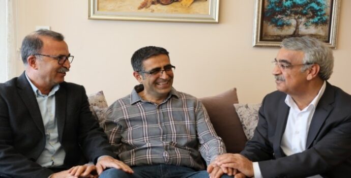 HDP Eş Genel Başkanı Mithat Sancar ve milletvekilleri ile Yeşil Sol Parti Eş Sözcüsü İbrahim Akın, tahliye olan İdris Baluken’i ziyaret etti.