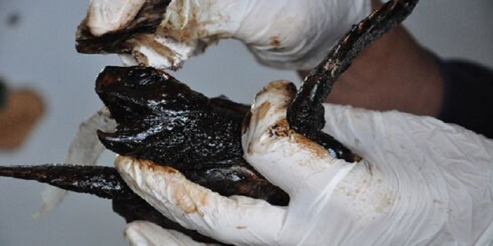 Sivil toplum örgütleri sahilde petrole bulanmış kaplumbağa ve kuş ölülerine rastladıklarını söyledi. Katran öbeklerinin temizlenmesinin aylar, hatta yıllar almasından endişe ediliyor.