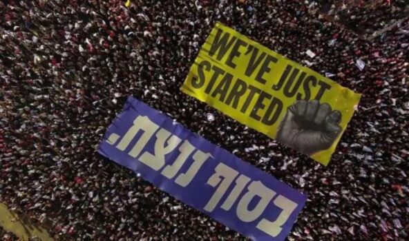Protesto hareketinin liderlerinden Shikhma Bressler, Tel Aviv’deki gösterilerde yaptığı konuşmada, hükümetin yargı reformunu Knesset’ten geçirmesi üzerine direnişi artıracaklarını vurguladı. Göstericilerin Kaplan Caddesi’nde açtığı “Daha yeni başlıyoruz” yazılı dev pankart dikkat çekti.