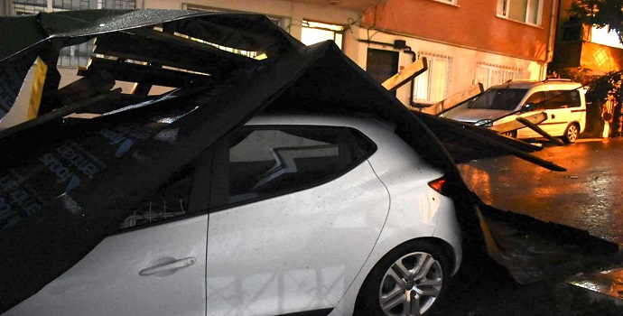 İstanbul’da akşam saatlerinde başlayan kuvvetli sağanak ve fırtına hayatı olumsuz etkiledi. Kentteki birçok semtte ağaçlar devrildi, bazı binaların çatısı uçtu.