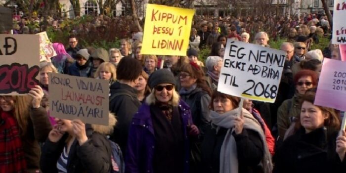 İzlanda’da 24 Ekim 2023 tarihinde, aralarında Başbakan Katrín Jakobsdóttir’in de bulunduğu on binlerce kadın, cinsiyete dayalı ücret adaletsizliğini protesto etmek için tam gün iş bıraktı. Grev, İzlanda’da 1975’ten bu yana yapılan ilk tam günlük kadın grevi oldu.