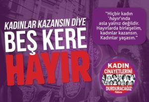 Türkiye’de cumhurbaşkanının yetkilerini genişleten anayasa değişiklikleri 16 Nisan’da refaranduma sunulacak. Referandum tarihinin kesinleşmesi ile birlikte “evet” ve “hayır” kampanyaları da özellikle sosyal medyada hız kazandı. Sivil toplum örgütleri arasında “hayır” kampanyasının başını ise kadın örgütleri çekiyor. Anayasa değişikliğine karşı “hayır” diyen kadın örgütleri, seslerini hem sosyal medyada hem de sokakda daha fazla duyurabilmek için ortaklaşa kampanyalar düzenliyor.