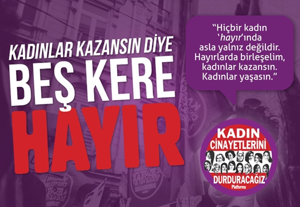 Hayır diyen kadınlar, etkin denge ve fren mekanizmaları kurulmadan yürütmenin yasama karşısında güçlendirilmesinin ve yürütmenin yargıyı etki altına almasına imkan sağlanmasının kadın haklarında kötüye gidişe sebep olabileceğinden kaygı duyuyor.