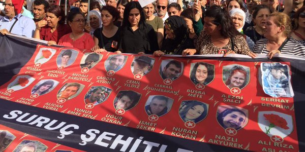 “Suruç Olayı” dedikleri bir katliamdır; Suruç’ta katledilenler kardeşlerimiz; bizden kopartılarak alınan Uğur Özkan, Kasım Deprem, Polen Ünlü, Hatice Ezgi Sadet, Cemil Yıldız, Çağdaş Aydın, Nazlı Akyürek, Fikriye Ece Dinç, Mücahit Erol, Murat Yurtgül, Emrullah Akhamur, İsmet Şeker, Okan Pirinç, Nartan Kılıç, Ferdane Kılıç, Serhat Devrim, Met Ali Barutçu, Erdal Bozkurt, Süleyman Aksu, Koray Çapoğlu, Cebrail Günebakan, Veysel Özdemir, Nazegül Boyraz, Alper Sapan, Alican Vural, Osman Çiçek,Vatan Budak, Dilek Bozkurt, Büşra Mete, Yunus Emre Şen, Aydan Ezgi Şalcı, Mehmet Ali Varol yoldaşlarımız ve canlarımızdır.