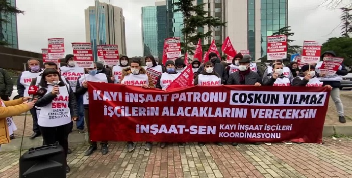 Ülkenin birçok kentinde bulunan işçiler, İnşaat-Sen’in öncülüğünde bir araya gelerek, İstanbul Levent’teki Kayı Holding’in Genel Merkezi önünde açıklama yaptı. Açıklamaya çok sayıda işçi ve sendika yöneticisi katıldı.