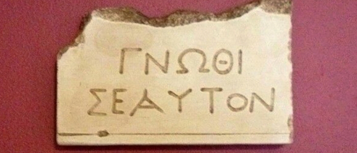 Delhi’deki Apollon Tapınağı’nın girişinde altın harflerle Yunanca yazılı olan bu sözün Latincesini The Matrix filmindeki Kahin’in mutfak duvarında da görürüz.