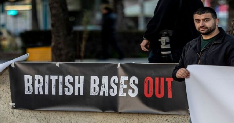 Güney Kıbrıs’ın başkenti Lefkoşa’da yüzlerce kişi, Birleşik Krallık’ın adadaki iki egemen askeri üssüne karşı protesto gösterisi düzenledi. Göstericiler Pasydy sendika binasından Cumhurbaşkanlığı Sarayı’na yürürken “Cyprus is not your launchpad” (Kıbrıs sizin füze rampanız değil) ve “British bases out” (İngiliz üsleri dışarı) yazılı pankartlar taşıdı.