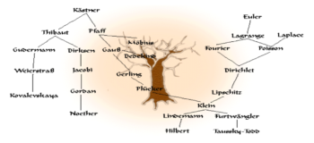 Bu linke girildiğinde bu projeye dahil edilen matematikçiler ve onların doktora hocaları görülebilir ve en başına kadar gidilebilir. Solda görülen şekil bu dallanmayı göstermektedir. Şekilde üzerine tıklanan isimle de torunlar ve dedeler görülebilir.