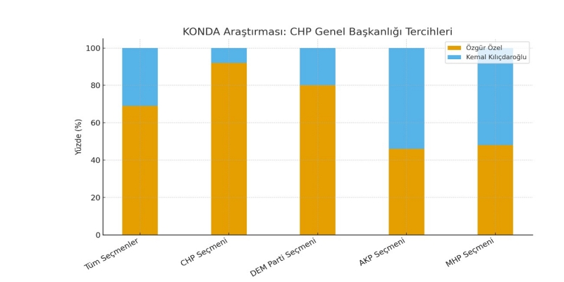 KONDA’nın yaptığı son araştırma, CHP Genel Başkanlığı için kamuoyundaki tercihleri ortaya koydu. Araştırmaya göre CHP ve DEM Parti seçmeni ağırlıklı olarak Özgür Özel’i desteklerken, AKP ve MHP seçmeni Kemal Kılıçdaroğlu’nu öne çıkardı.