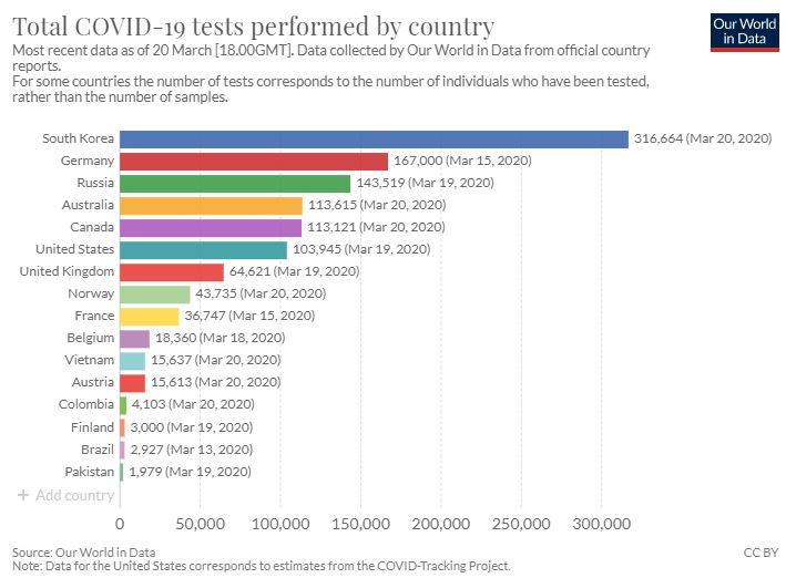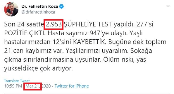 Türkiye bu konuda oldukça geride, üstelik 20 Mart tarihinde 3656 kişiye test yapılırken, 1 gün sonrasında bu sayı beklenenin aksine 2953 kişiye gerilemiş.