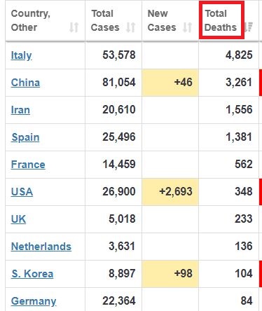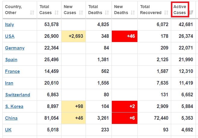 Ya vaka artış sayısı? Örneğin yeni vaka artış sayısında 21 Mart tarihinde ABD 2. sırada. Muhtemelen birkaç gün içerisinde İtalya’yı da geçerek en çok yeni vakaya orada rastlanacak. Hatta ay sonu gelmeden ABD toplam vaka sayısında Çin’i geçebilir.