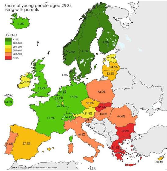 Bu konuda asıl taşıyıcı muhtemelen gençler. Semptomları pek göstermeden hatta hiç yaşamadan hastalığı taşıyor, kendi başına atlatabiliyorlar. Ebeveynleriyle yaşayan gençleri hesaba katmak gerek. Aşağıda ilgili oranlar verilmiş. Kuzey ve Güney Avrupa arasındaki ayrım keskin. Yani çekirdek veya geniş aile olarak ikamet eden kişilerde risk haliyle daha yüksek. Türkiye’de çoğu genç ailesiyle yaşıyor. Her gence her dakika test yapma imkânı hala hiçbir ülkede yok; öyleyse ilk yapılması gerekenlerden biri özellikle gençlerle yaşlıların iletişimini kesmek.